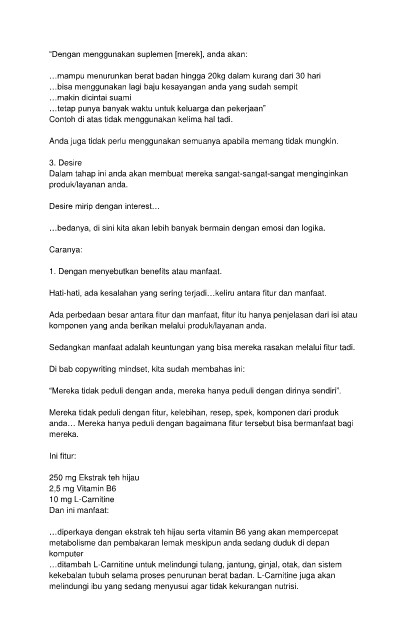 Ada perbedaan besar antara fitur dan manfaat, fitur itu hanya penjelasan dari isi atau
