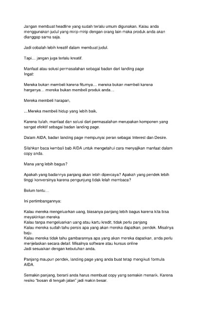 tinggi konversinya karena pengunjung tidak lelah membaca?