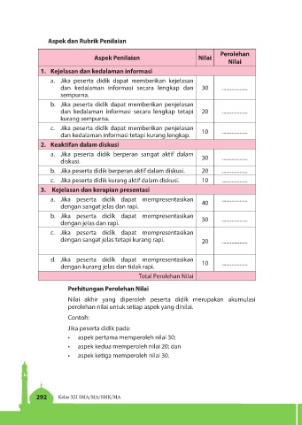 perolehan nilai untuk setiap aspek yang dinilai.