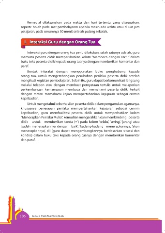 buku teks peserta didik kepada orang tuanya dengan memberikan komentar dan