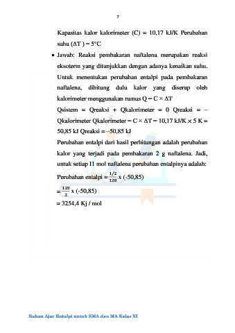 Kapasitas kalor kalorimeter (C) = 10,17 kJ/K Perubahan