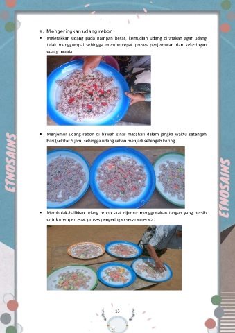 hari (sekitar 6 jam) sehingga udang rebon menjadi setengah kering.