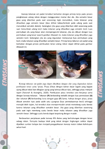 Konsep tekanan zat padat tersebut berkaitan dengan prinsip kerja pada proses