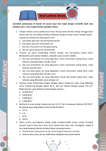4. Jika kardus terasi udang mempunyai alas 0,2 m dan mempunyai tekanan 100 N/m .