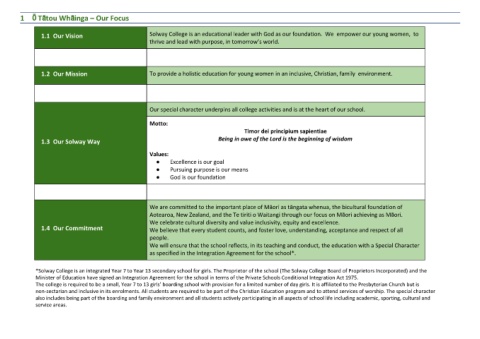 1.2 Our Mission To provide a holistic education for young women in an inclusive, Christian, family environment.