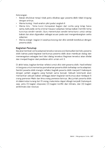 • Warna biru : Tema kunci merupakan bagian dari cerita yang tetap harus