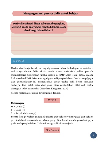 Usaha  atau  kerja  (work)  sering  digunakan  dalam  kehidupan  sehari-hari.