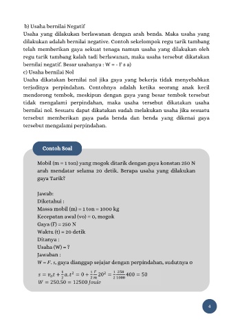 Usaha yang dilakukan berlawanan dengan arah benda. Maka usaha yang
