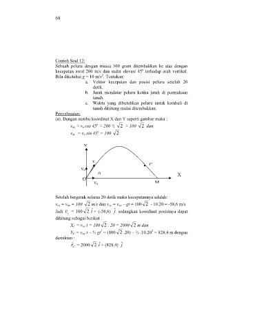 Jadi v = 100 2 i + (-58,6) j sedangkan koordinat posisinya dapat