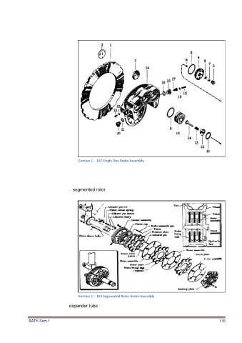 Gambar 1 - 162 Single Disc Brake Assembly segmented rotor Gambar 1 - 163 Segmented Rotor Brake Assembly expander tube BATK Sem 1 176