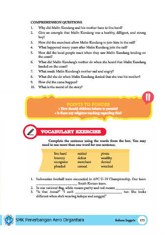 2. Give an example that Malin Kundang was a healthy, dilligent, and strong