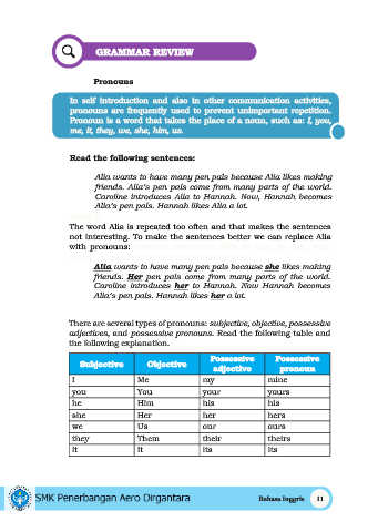Pronoun is a word that takes the place of a noun, such as: I, you,