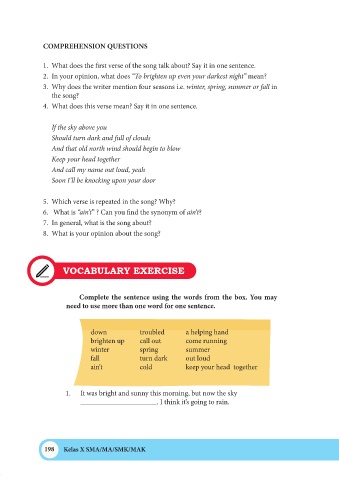 1. What does the first verse of the song talk about? Say it in one sentence.