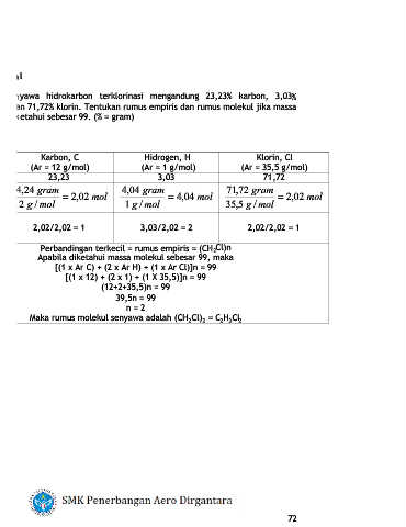 hidrogen dan 71,72% klorin. Tentukan rumus empiris dan rumus molekul jika massa
