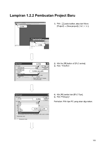 2) Klik 2) Klik the [▼] button of [PLC series].