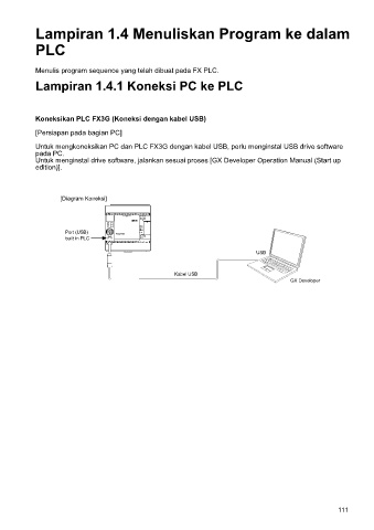 Koneksikan PLC FX3G (Koneksi dengan kabel USB)