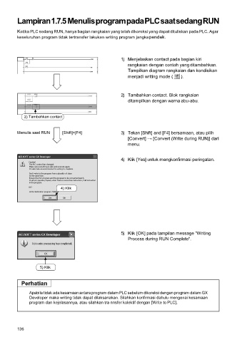 Ketika PLC sedang RUN, hanya bagian rangkaian yang telah dikoreksi yang dapat dituliskan pada PLC. Agar