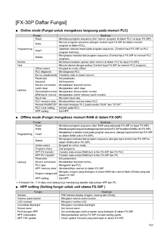 HPP-FX transfer Transfer data antara RAM built in the FX-30P dan FX PLC.