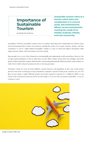 community. It can be s imply defined sustainable tourism as a type of travel and explore destinations while
