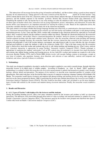 and students take talking during teaching and learning process. In fact, both EFL teachers and students are required to talk in the