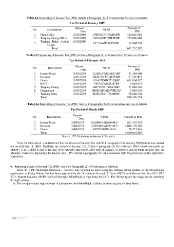 Table 4.4 Depositing of Income Tax (PPh) Article 4 Paragraph (2) of Construction Services in January