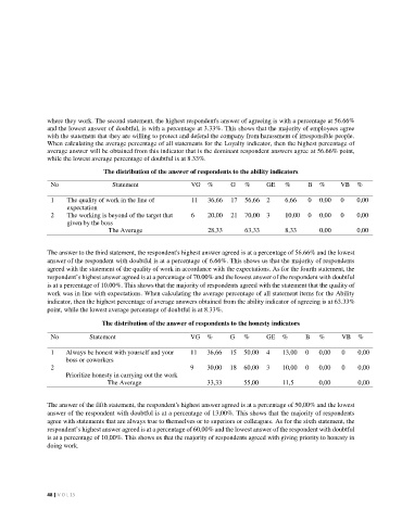 respondent’s highest answer agreed is at a percentage of 60,00% and the lowest answer of the respondent with doubtful