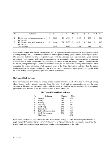 Based on the research data above, the average of each indicator / variable of job satisfaction is calculated, among