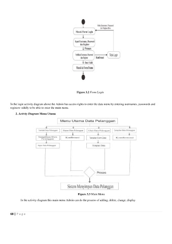 In the login activity diagram above the Admin has access rights to enter the data menu by entering usernames, passwords and