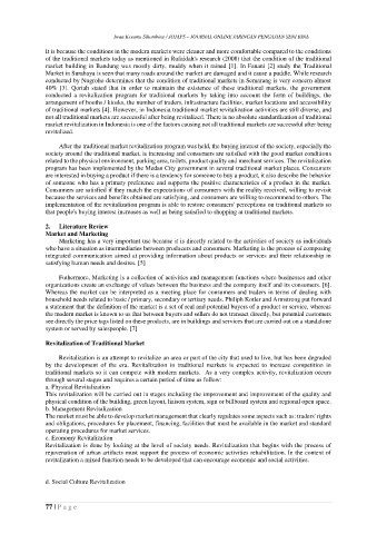 of traditional markets [4]. However, in Indonesia traditional market revitalization activities are still diverse, and