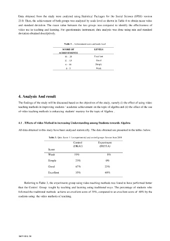 23.0. Then, the achievement of both groups was analyzed by scale level as shown in Table 4 to obtain mean value