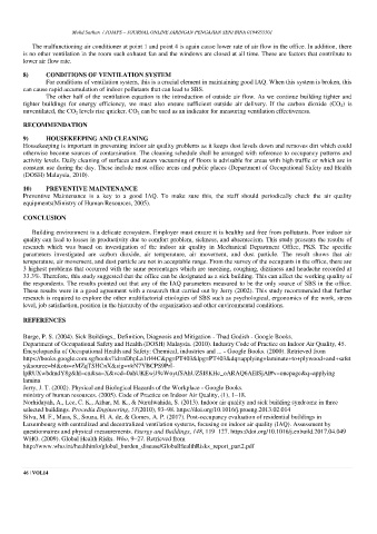 the respondents. The results pointed out that any of the IAQ parameters measured to be the only source of SBS in the office.