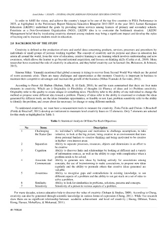 creativity can also be generated through scientific knowledge in various forms of expression (Cheng, 2011). While Yee research