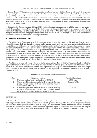 socioeconomic status are associated with lower creativity. While Yee (Heong et al., 2011) and team study show different result.