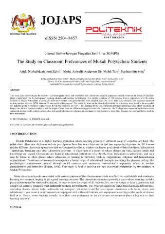 The Study on Classroom Preferences of Mukah Polytechnic Students