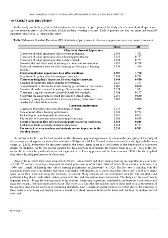 Table 3 Mean and Standard Deviation (SD) of attitude of participants to classroom appearance and classroom environment.