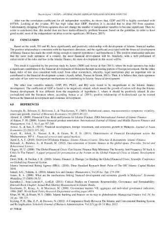 development. The coefficient of GDP is found to be negatively related, which meant the growth of nation will drop the Islamic