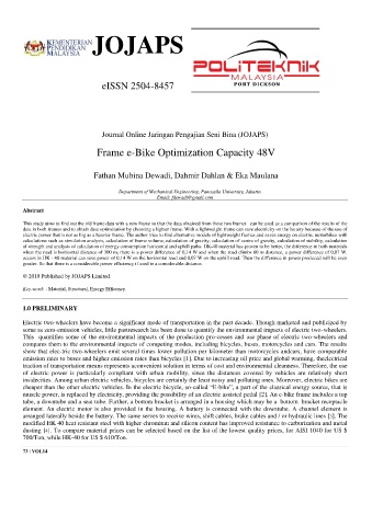 muscle power, is replaced by electricity, providing the possibility of an electric assisted pedal [2]. An e-bike frame includes a top