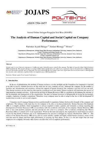 (BRI) Sigambal unit. This research attempts to examine whether human capital and social capital have a significant effect on the performance of BRI Sigambal