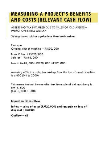 Inflow – sales of asset (RM20,000) and tax gain on loss of