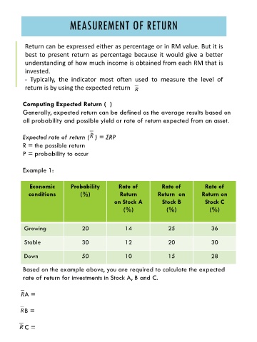 Return can be expressed either as percentage or in RM value. But it is