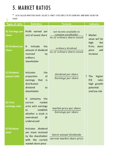 - ALSO CALLED INVESTORS RATIO. RELATE A FIRM’S STOCK PRICE TO ITS EARNINGS AND BOOK VALUE PER