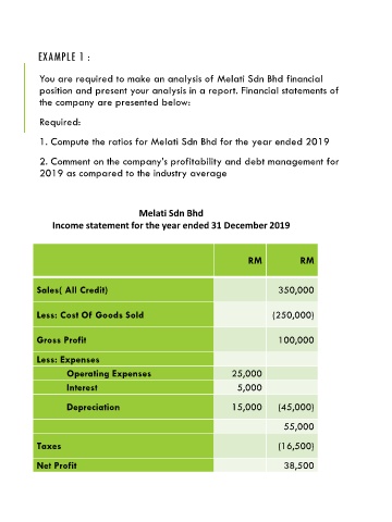 1. Compute the ratios for Melati Sdn Bhd for the year ended 2019