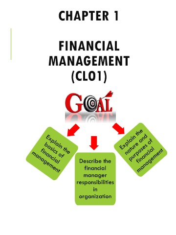 CHAPTER 1 FINANCIAL MANAGEMENT (CLO1) Describe the financial manager responsibilities in organization