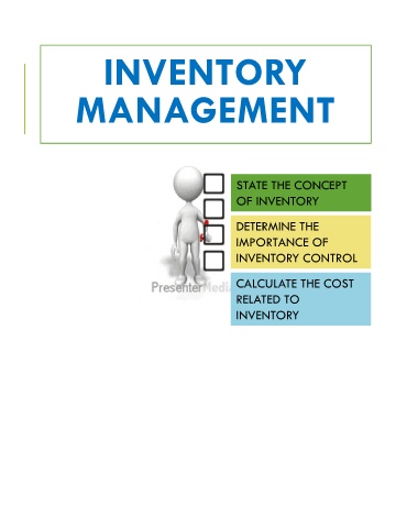 INVENTORY MANAGEMENT STATE THE CONCEPT OF INVENTORY DETERMINE THE IMPORTANCE OF INVENTORY CONTROL CALCULATE THE COST RELATED TO INVENTORY