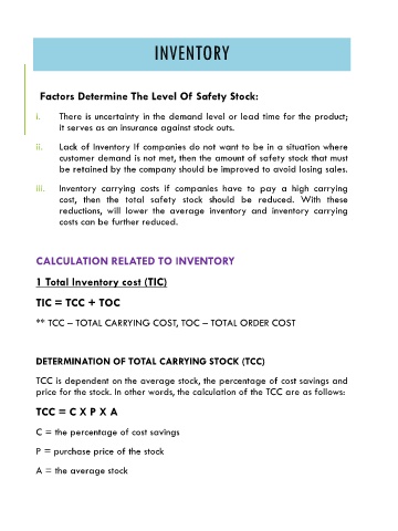 CALCULATION RELATED TO INVENTORY