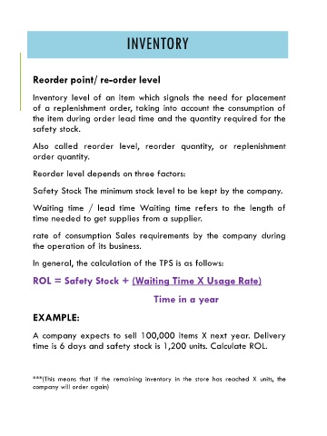 time is 6 days and safety stock is 1,200 units. Calculate ROL.