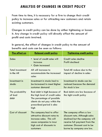 ANALYSIS OF CHANGES IN CREDIT POLICY