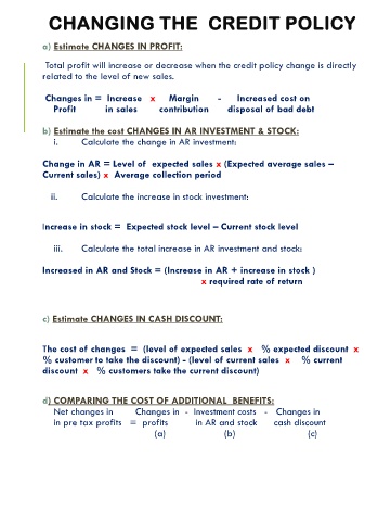 b) Estimate the cost CHANGES IN AR INVESTMENT & STOCK:
