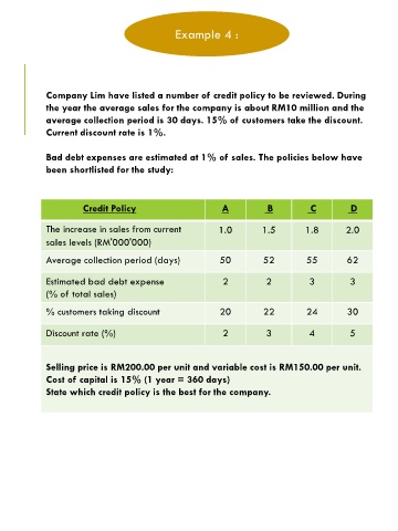 Company Lim have listed a number of credit policy to be reviewed. During