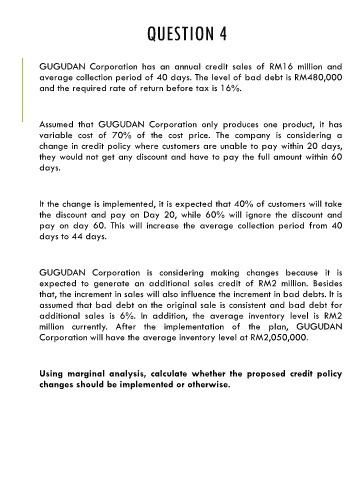 GUGUDAN Corporation has an annual credit sales of RM16 million and